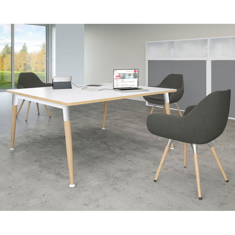 The Margolis 4Wood White Office Desk is a brand new desking concept incorporating as features one piece double tops, solid wood legs, rounded corners & integrated storage & screen panels. Three finishes to chose from: light oak, white, dark grey. Desks are produced using lacquered solid beech wood. Matching storage, pedestals & office tables are available to complement the range.