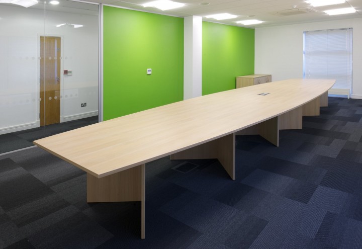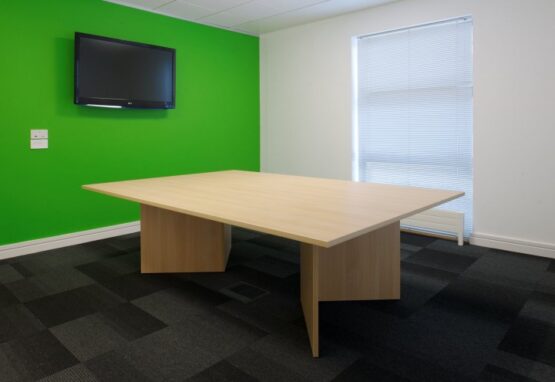 The Margolis Charteris Meeting Table design principle is adapted to many different sizes and shapes of table top, and is supplied in either melamine, or for classic quality, book-matched veneer – including inlay and crossbanding options for veneers. The arrowhead base is adapted to an X- or H-section for smaller coffee tables.