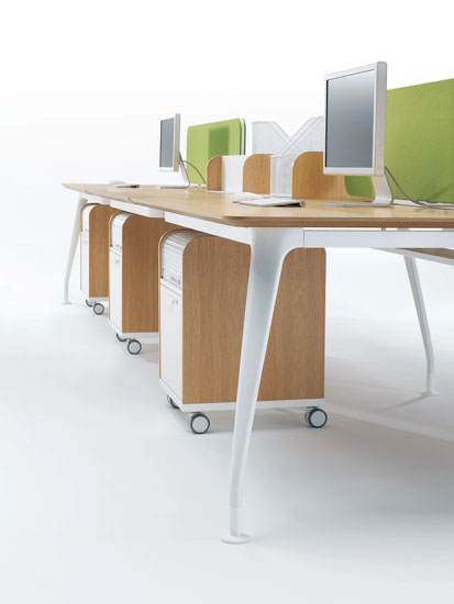 DNA Modern Office Bench Desk by Margolis showcases clean lines, which give the bench system a simple elegance that belies the sophistication of its design and engineering. The bench’s straightforward configuration means it’s simple to create an individually tailored solution that makes every square foot work at its very hardest. Simultaneously your people have the personal space they need to be at their best. DNA features an elegant leg frame which supports a combination of worktop shapes and personal storage elements, affording a clarity of thought and design in a complex environment.