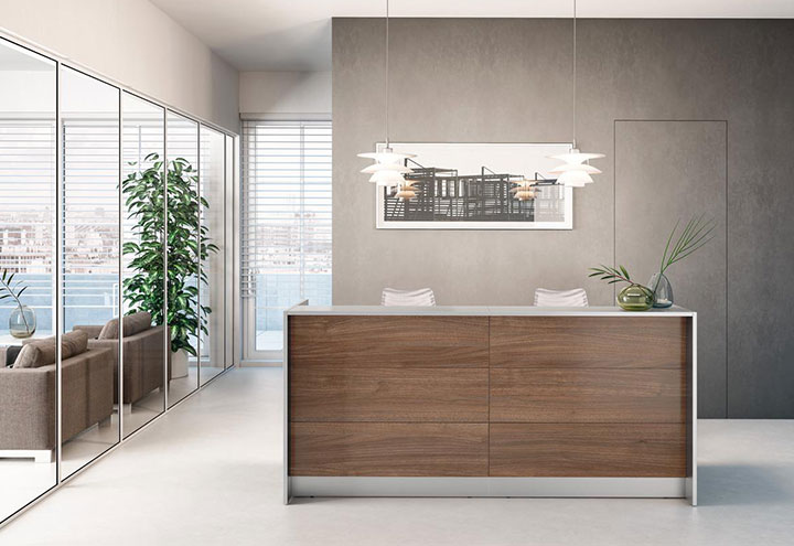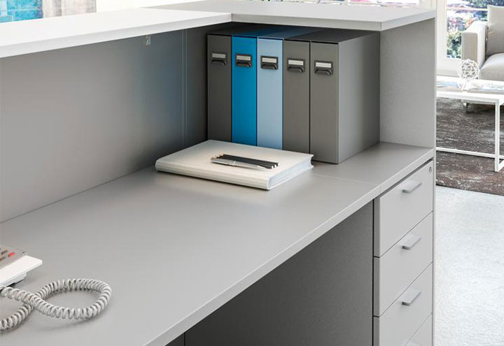 The Line Reception Desk is the first surrounding expressing the personality and the image of a company: with its strict minimalism, LINE communicates an atmosphere of fine functionality. Clean lines, large surfaces and volumes of different heights, greet visitors and meet all the needs of the operators.
