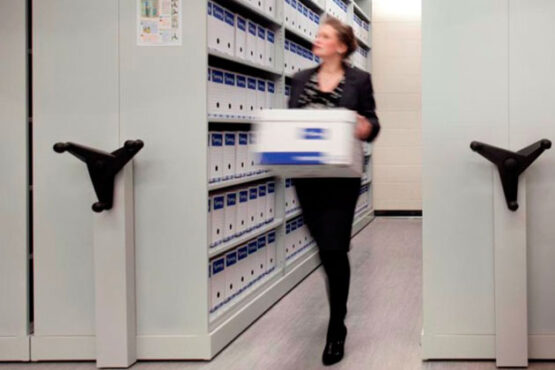 Mobile shelving can be operated by a choice of push and pull handles or a mechanical system.